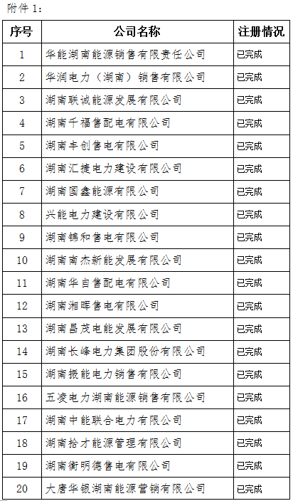 湖南公布第一批107家售電公司名單
