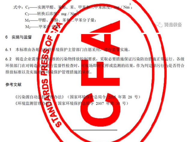 2017年7月31日,由中國鑄造協(xié)會(huì)發(fā)布的T/CFA030802-2—2017《鑄造行業(yè)大氣污染物排放限值》(中國鑄造協(xié)會(huì)標(biāo)準(zhǔn)公告 2017年 第06號)發(fā)布。該標(biāo)準(zhǔn)于2017年10月1日起實(shí)施。