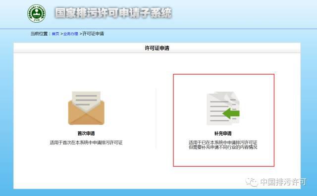正確的操作是——進(jìn)入“國(guó)家排污許可證信息公開系統(tǒng)”的“申請(qǐng)子系統(tǒng)”(http://permit.mep.gov.cn/permitExt/outside/LicenseRedirect),進(jìn)行“補(bǔ)充申請(qǐng)”。