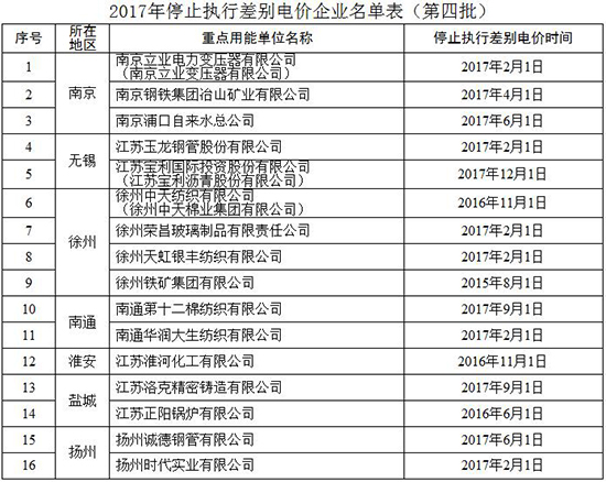 江蘇省決定對部分企業(yè)停止實施差別電價和懲罰性電價