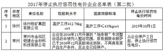 2、2017年停止執(zhí)行懲罰性電價企業(yè)名單表(第二批)