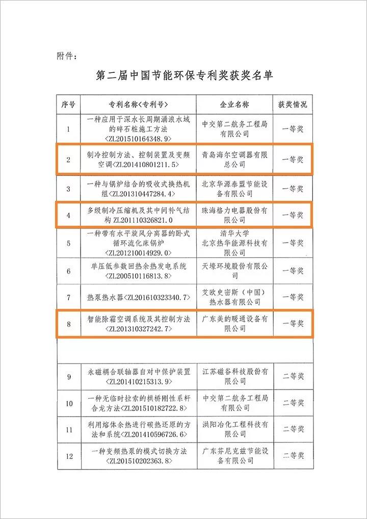 此次獲獎名單里,更是有海爾空調(diào)、格力電器、美的暖通等知名大公司獲得了一等獎、二等獎,這也足以看出這次的中國節(jié)能環(huán)保專利評選含金量非常高!