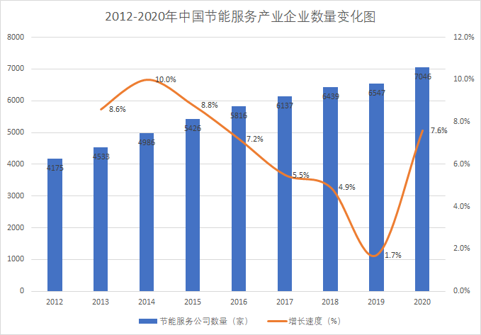 2012-2020年,全國從事節(jié)能服務業(yè)務的企業(yè)數(shù)量逐年上升,2020年增速有所提升。