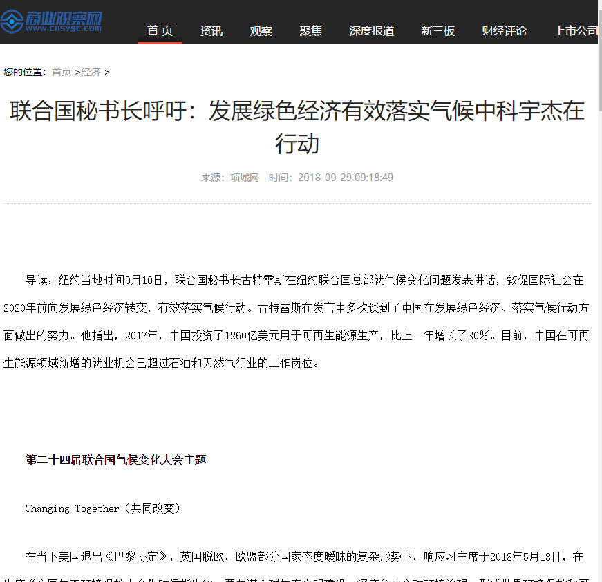媒體爭相報道:發(fā)展綠色經(jīng)濟有效落實氣候中科宇杰在行動