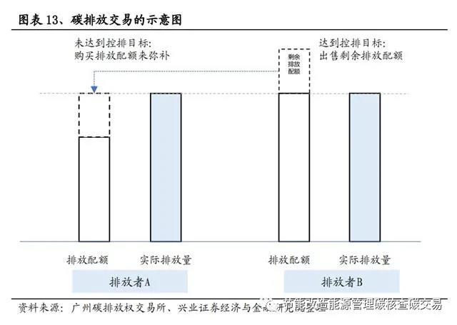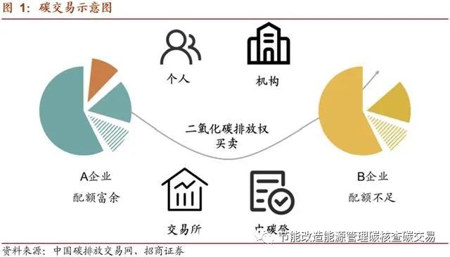 碳交易市場(chǎng)是由政府通過對(duì)能耗企業(yè)的控制排放而人為制造的市場(chǎng)。通常情況下,政府確定一個(gè)碳排放總額,并根據(jù)一定規(guī)則將碳排放配額分配至企業(yè)。如果未來企業(yè)排放高于配額,需要到市場(chǎng)上購(gòu)買配額。與此同時(shí),部分企業(yè)通過采用節(jié)能減排技術(shù),最終碳排放低于其獲得的配額,則可以通過碳交易市場(chǎng)出售多余配額。雙方一般通過碳排放交易所進(jìn)行交易。